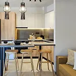 Geniet van een ingerichte keuken in Paizan Homes - Kos Centre appartement met koffie- en theefaciliteiten, een koelkast, een oven voor uw gemak. De dichtstbijzijnde bushalte bij Paizan Homes - Kos Centre appartementen is Triton Hotel, het is op 10 minuten wandelafstand.